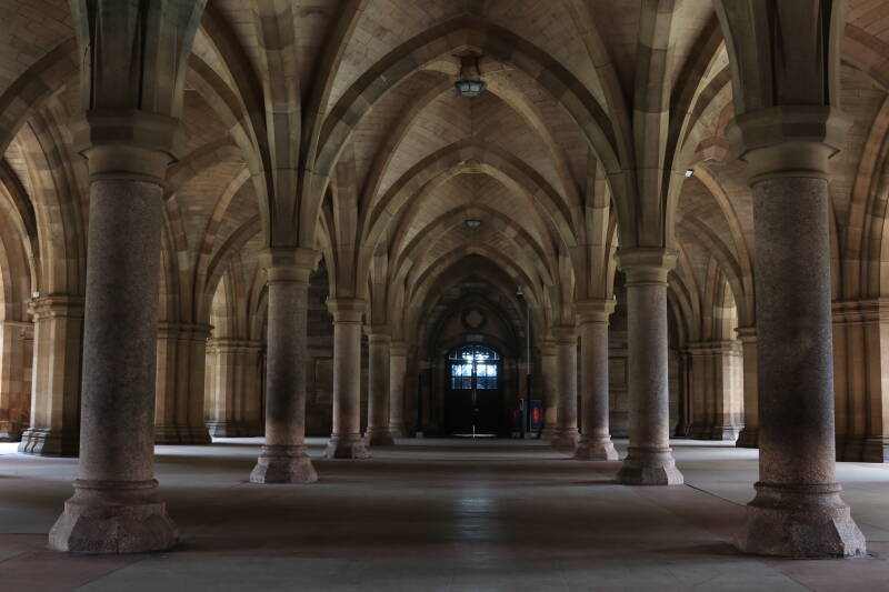 The cloisters at Glasgow University also known as the undercroft were moved from the university's original site on Glasgow High Street.